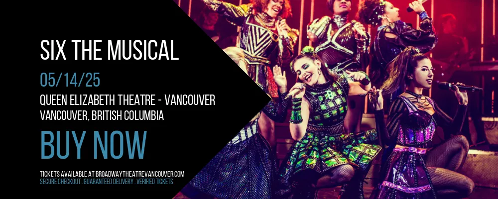 Don’t wait to reserve your tickets to "Six!" The best seats for this Wednesday 14th May 2025 showing are already limited. Prices start at $87. Reach out to Queen Elizabeth Theatre today for any further information.